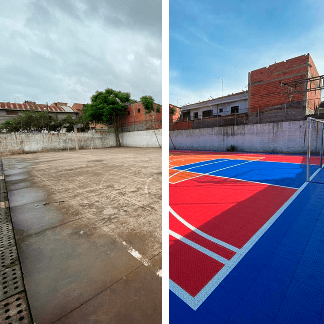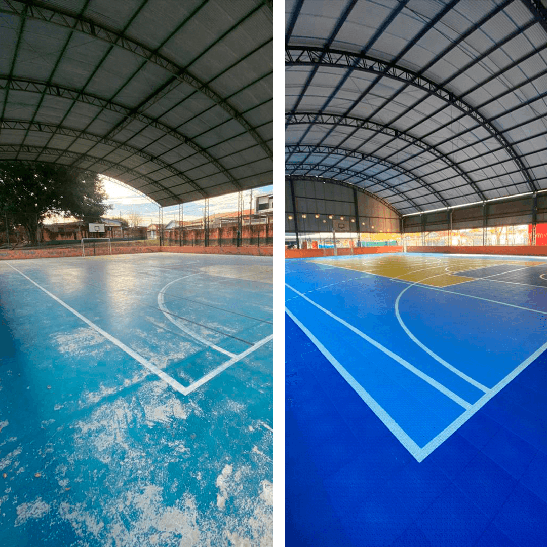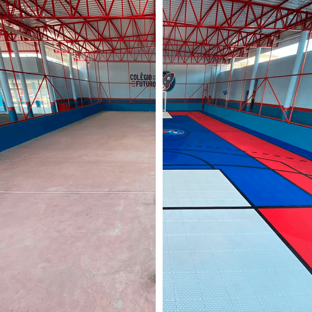 A instalação do piso modular na quadra foi inacreditável! Sem sujeira, sem quebradeira, e concluída em menos de 8 horas. Nossos alunos voltaram a usar o espaço no mesmo dia.